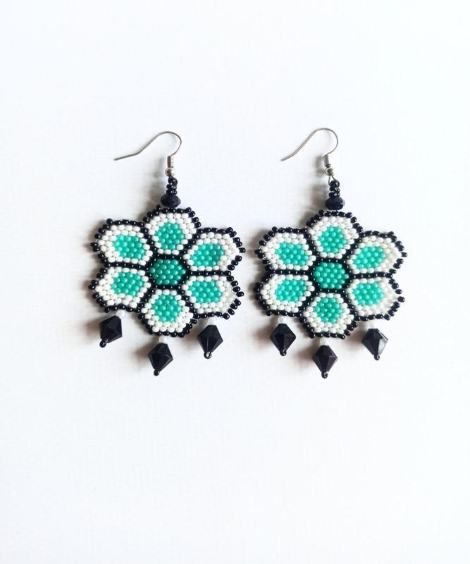 Серьги из бисера, бирюзовые серьги, цветочные серьги, красивые серьги, серьги в подарок де...