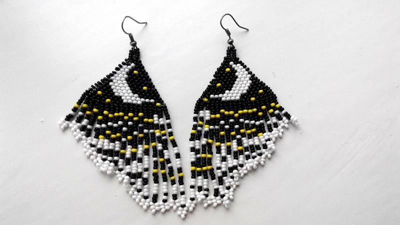 Серьги выполнены из качественного чешского бисера. Швензы можно заменить на серебряные 925 пробы (за отдельную плату). Серьги прекрасно держат форму, эти серьги сделаны с любовью. Серьги не оставят вас без внимания! Прекрасный подарок для ваших близких и родственников, но не забывайте о себе! Я могу выполнить ваш заказ в любой цветовой гамме и нужного для вас размера. Пожалуйста, свяжитесь со мной и задайте любые вопросы. Напишите, и мы выберем вместе украшение, которое подойдет вам лучше всего. Длина - 9,5 см. Дополнительные характеристики: Цвет : Белый Цвет : Желтый Цвет : Черный Материал : Бисер