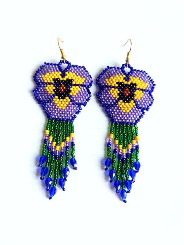 Красивые серьги из бисера, подарок девушке, серьги анютины глазки