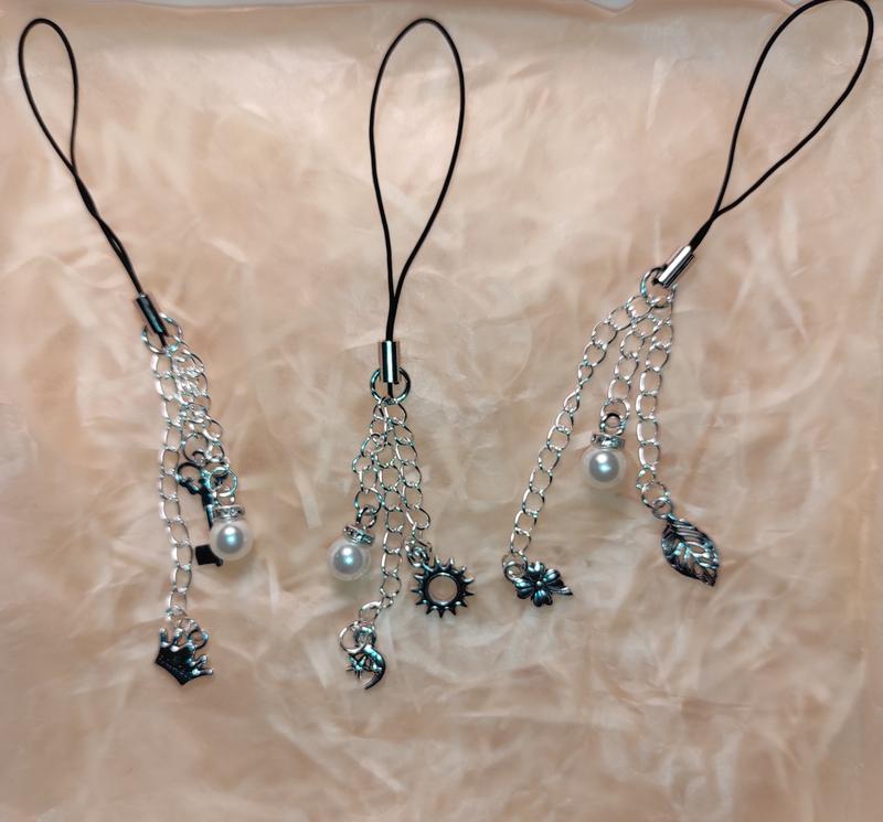 Подвеска (металл серебряного цвета) с цепочками (металл серебряного цвета), подвесными фигурками (металл серебряного цвета) различной тематики (на выбор) и перламутровой бусиной с камушками. Можно использовать как подвеску на брелок/сумку/телефон. Длина изделия 12 см (длина подвески - 5 см, фигурка 1,5х1,5 см, бусина 1х1 см) 5 Изделие хендмейд. Идет вместе с упаковкой. Нагладлю по почте. Цена 40 грн за шт. Або 90 грн за 3 шт.