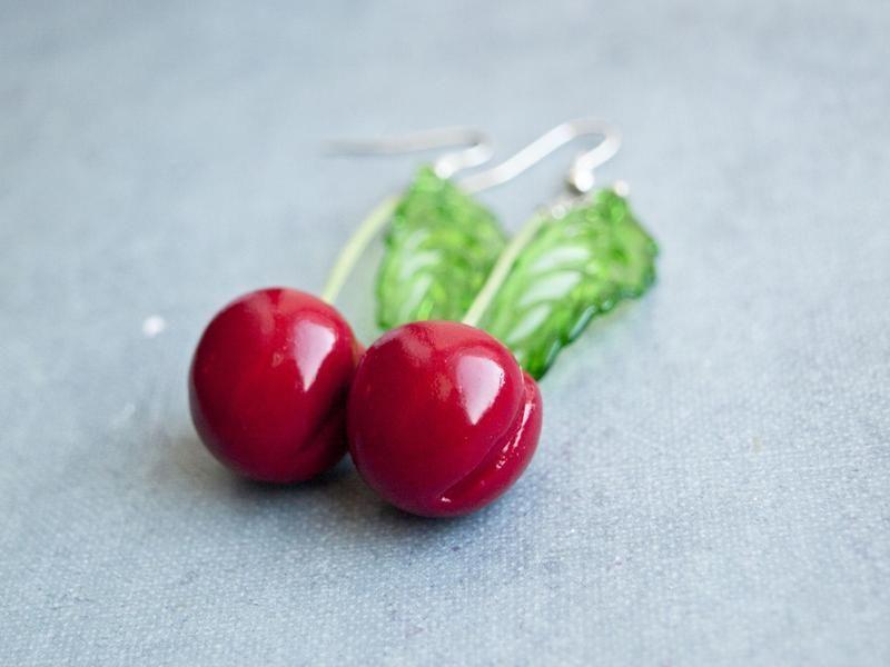 Серьги вишни ручной работы Дополнительные характеристики: Цвет : Красный Материал : Бусины Материал : Полимерная глина Товар под заказ