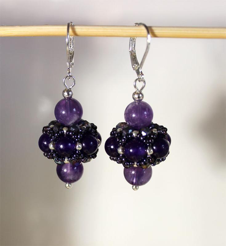 Очаровательные сережечки с натуральным аметистом. Серьги собраны из посеребренной фурнитуры, кристаллов , мельчайшего японского бисера ТОХО и бусин натурального аметиста. Длина серьги от кольца швензы - 35 мм, длина вместе со швензой - 45 мм. Смотрится изделие превосходно!!! Дополнительные характеристики: Цвет : Фиолетовый Камни / вставки : Аметист