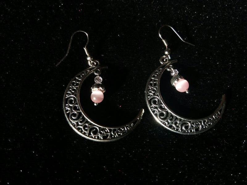 Серьги в виде луны со стеклянной бусиной ′кошачий глаз′. Длина: 5,5 см. Доставка: Укрпочта, Новая почта, Justin.