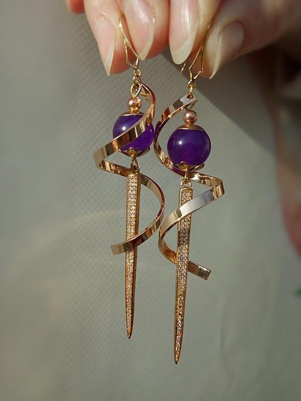 Длинные, стильные серьги из александрита, позолоченной 24К фурнитуры премиум класса с цирконами. Дополнительные характеристики: Цвет : Желтый Цвет : Фиолетовый Камни / вставки : Александрит Камни / вставки : Аметист Камни / вставки : Цирконий Материал : Бусины Материал : Гипоаллергенная фурнитура Материал : Латунь