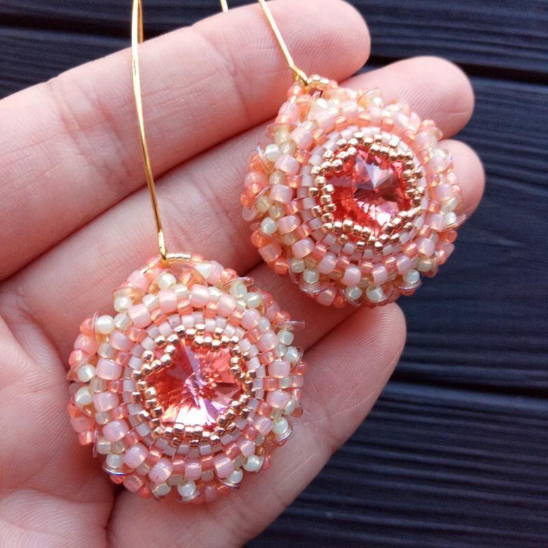 Фурнитура Корея (гипоаллергенная) бисер японский, элементы Swarovski Дополнительные характеристики: Цвет : Оранжевый Материал : Бисер Материал : Гипоаллергенная фурнитура