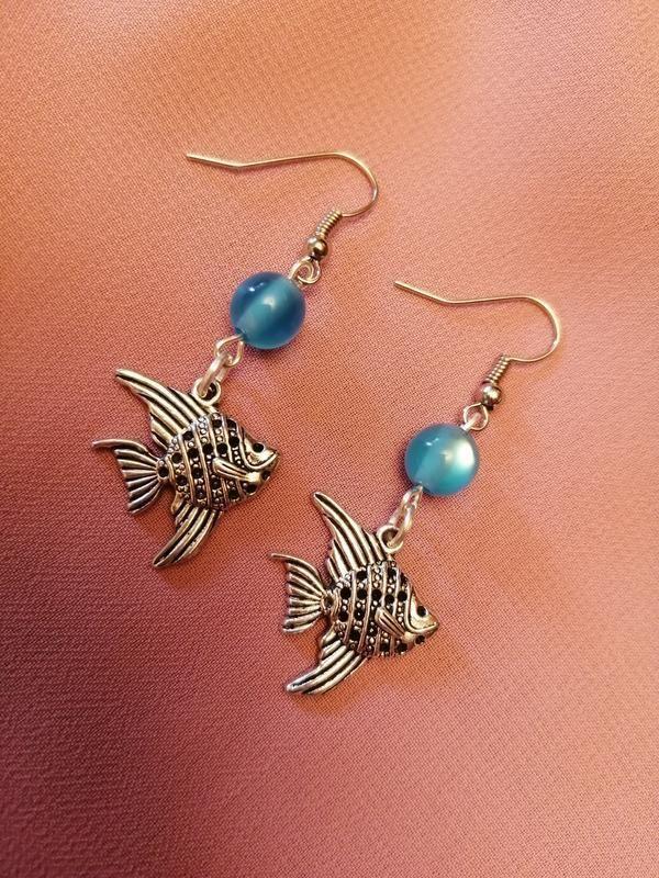 Длинные серьги подвески "рыбки" Металл и акрил Длина общая 5 см Длина подвески 3 см