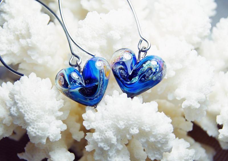 Любовь — это когда счастье другого есть необходимое условие вашего счастья Бусина выполнена в технике лэмпворк из очень красивого итальянского стекла. Стекло с вкраплениями серебра! Серьги "Нежность любящего сердца" Материалы: - авторский лэмпворк - сталь ювелирная гипоаллергенная Длина застежек 4,2 см. Длина всего изделия 5,7 см. Возможна замена на любые наиболее подходящие для Вас застежки. Диаметр бусины 1,7 на 1,7 см. Подарочки: - красивая жестяная коробочка Дополнительные характеристики: Цвет : Синий Материал : Бусины Материал : Гипоаллергенная фурнитура Материал : Медицинская сталь Товар под заказ