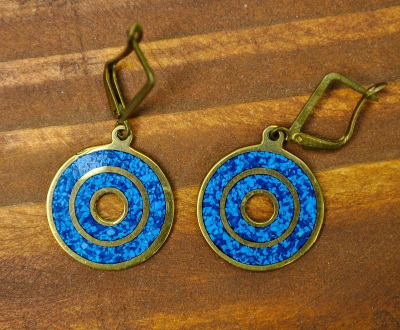 Кульчики ручної роботи. Латунь, полімерні матеріали. Діаметр 21 мм., довжина зі швензою 40 мм