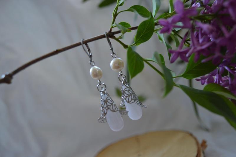 Эффектные серьги - капли ручной работы из натурального розового кварца и пресноводного жемчуга на фурнитуре из латуни. Швензы из гипоаллергенной нержавеющей стали Длина сережек 6 см. Серьги созданы специально для одноименного колье. Розовый кварц — талисман людей, занимающихся искусством. Даже небольшой кусочек необработанного кристалла в качестве талисмана помогает своему хозяину увеличить силу его таланта, придает уверенность в себе, притягивает успех. Розовый кварц – это женский камень. Он дарит взаимность в любви, охраняет во время беременности. Незамужним женщинам помогает встретить хорошего мужа. Розовый кварц учит радоваться жизни, прощать, смотреть на мир глазами ребенка, получать удовольствие от каждого момента своей жизни и любить себя! Идеально для выпускного бала! Это невероятно нежное и утонченное украшение выгодно подчеркнет молодость и свежесть юной девушки. Отправка товара после полной оплаты или наложенным платежом после предоплаты 90 грн Дополнительные характеристики: Цвет : Розовый Камни / вставки : Жемчуг