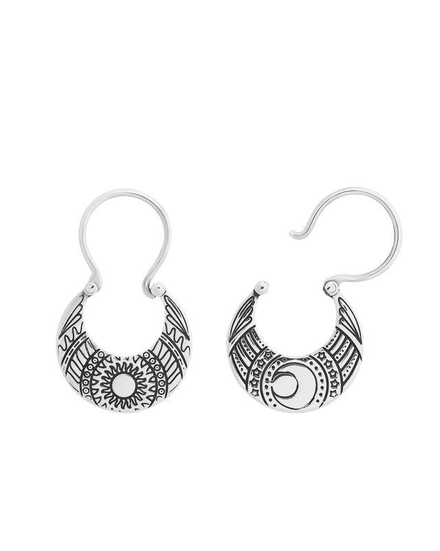 Серебряные серьги с чернением. Этнические мотивы в сочетании с минималистическим исполнением. Возможно изготовление без рисунка. Дополнительные характеристики: Цвет : Черный Материал : Серебро