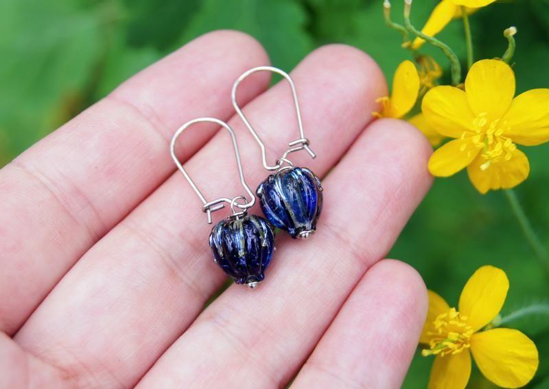Серьги "Невероятный день" Материалы: - стекло - серебро - медицинская сталь Бусины цветы ручной работы. Техника лемпворк. Итальянское стекло с добавлением серебра. Размер цветка 1см. Застежки и фурнитура из медицинской стали. Могу подобрать любые застежки. В подарок коробочка. Дополнительные характеристики: Цвет : Синий Цвет : Черный Материал : Бусины Материал : Гипоаллергенная фурнитура Материал : Медицинская сталь Материал : Серебро