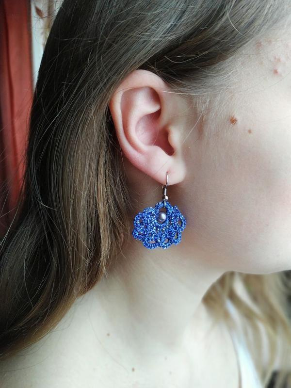 Кружевные серьги, выполненные в технике фриволите. Дополнительные характеристики: Материал : Нитки