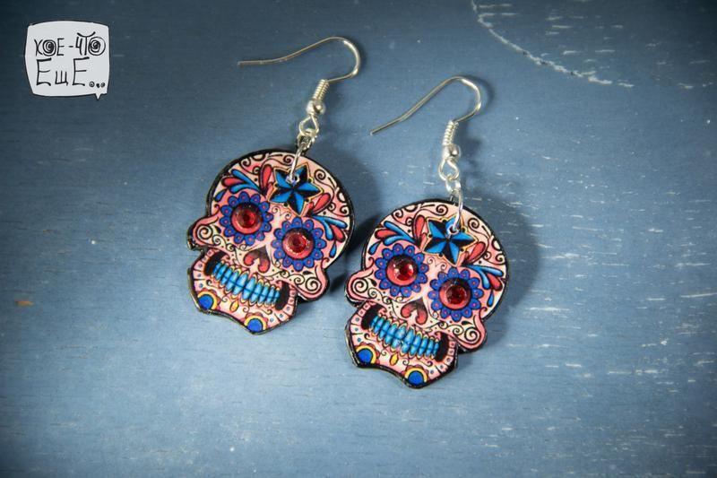 Серьги с узорчатыми черепами бесспорно станут изюминкой готичного образа. Вместо глазниц на узорчатых черепах - красно-бордовые стразы. Размер подвесок - примерно 2,5*3 см. Серьги изготовлены из полимерной глины в технике декупаж. Заказ Вы получите в подарочном пакетике! Пересылка Укрпочтой и Новой почтой, оплата на карточку Приватбанка. Дополнительные характеристики: Цвет : Красный Камни / вставки : Стразы Материал : Металлическая фурнитура Материал : Полимерная глина