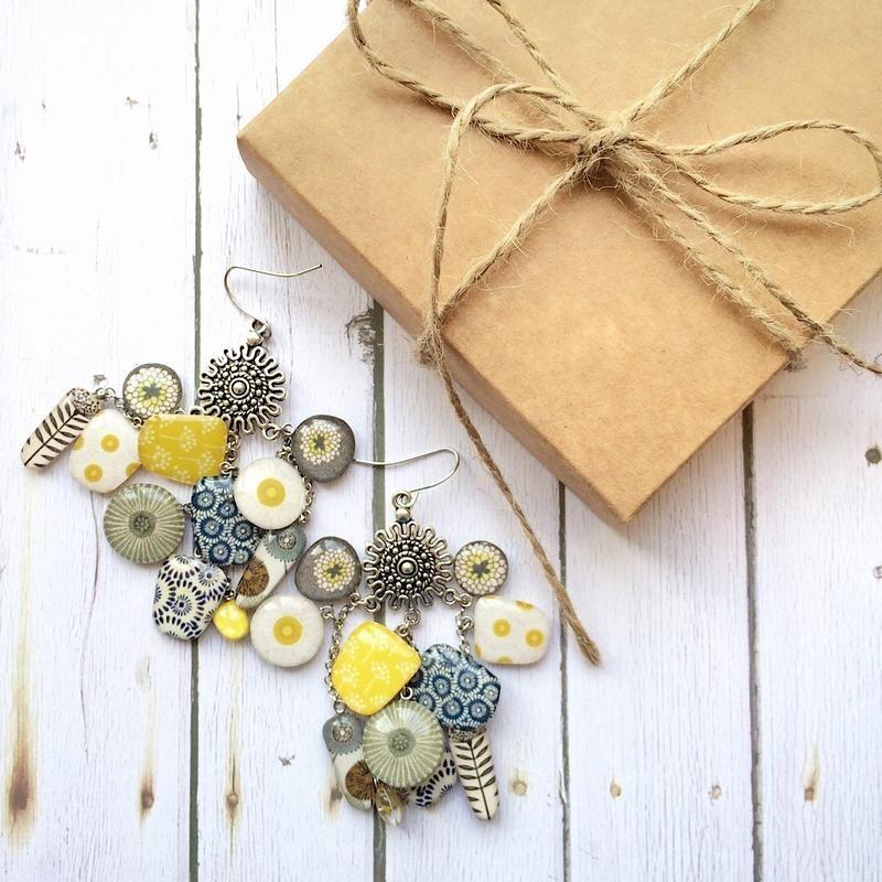 Серьги с фирменными двухсторонними подвесками из ювелирной смолы в виде стилизованных одуванчиков. Фурнитура - бижутерный сплав, цвет - серебро. Легкие и удобные в носке. Дополнительные характеристики: Материал : Металлическая фурнитура Материал : Эпоксидная смола