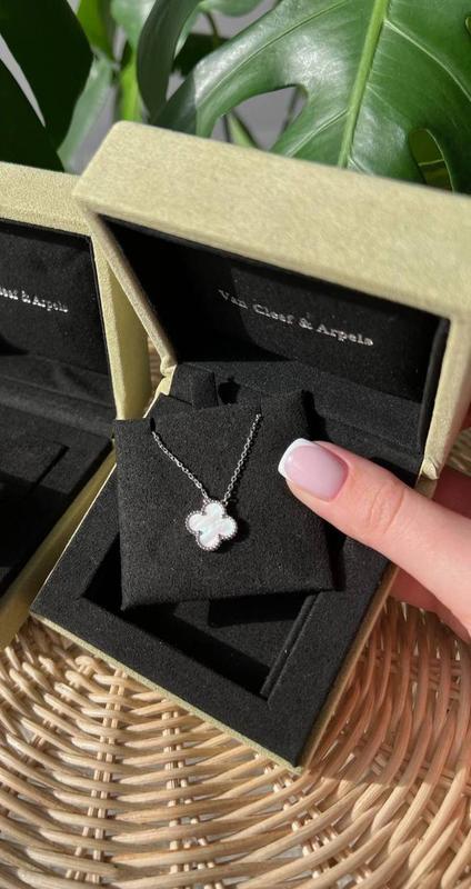 Подвеска цепочка vca van cleef с белым перламутром Размер цветка 1,5 см Длина цепочки 45 см Серебро в позолоте, проба AU750 Серийный номер Премиум упаковка: кофр, коробка, шкатулка, пакет, сертификат
