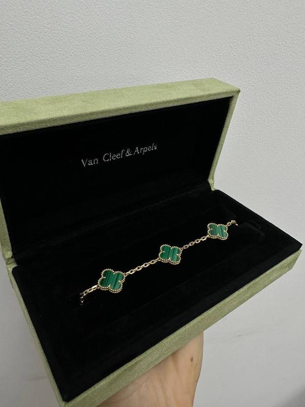 Браслет vca van cleef из коллекции Vintage Alhambra bracelet, 5 motifs С зеленым малахитом Серебро в позолоте, проба AU750 Серийный номер Премиум упаковка: кофр, коробка, шкатулка, пакет, сертификат 4300 грн Подвеска цепочка vca van cleef с зеленым малахитом Размер цветка 1,5 см Длина цепочки 45 см Серебро в позолоте, проба AU750 Серийный номер Премиум упаковка: кофр, коробка, шкатулка, пакет, сертификат 3700 грн