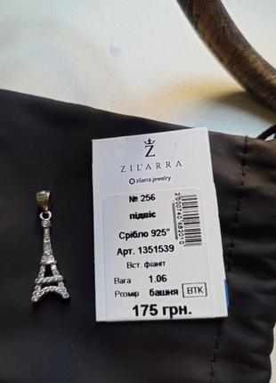 Серебряная подвеска. Нова Ейфелева вежа. Серебро 925.