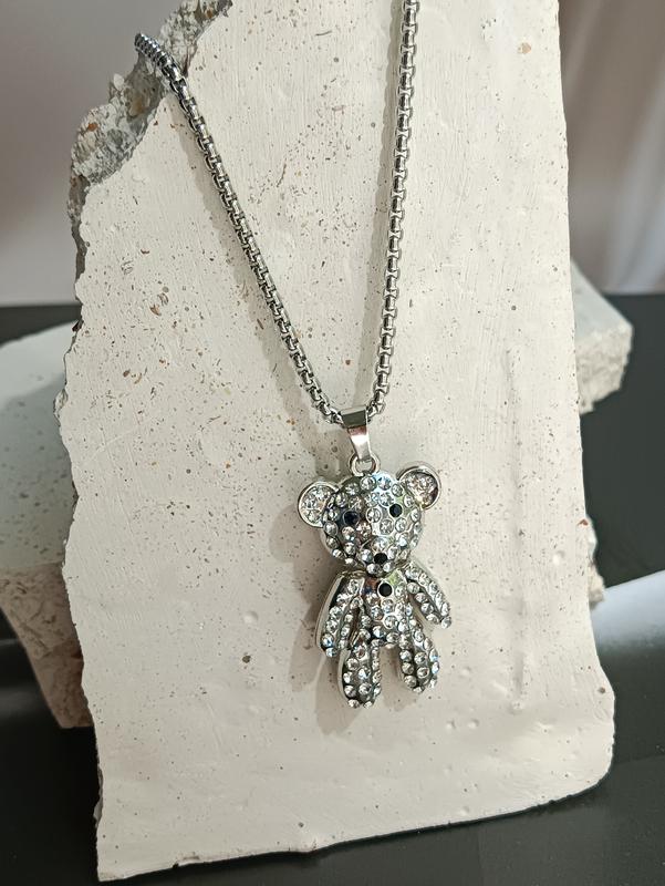 Нержавіюча ювелірна сталь, родій Довжина ланцюжка 59см, ведмідь кулон 4'6см
