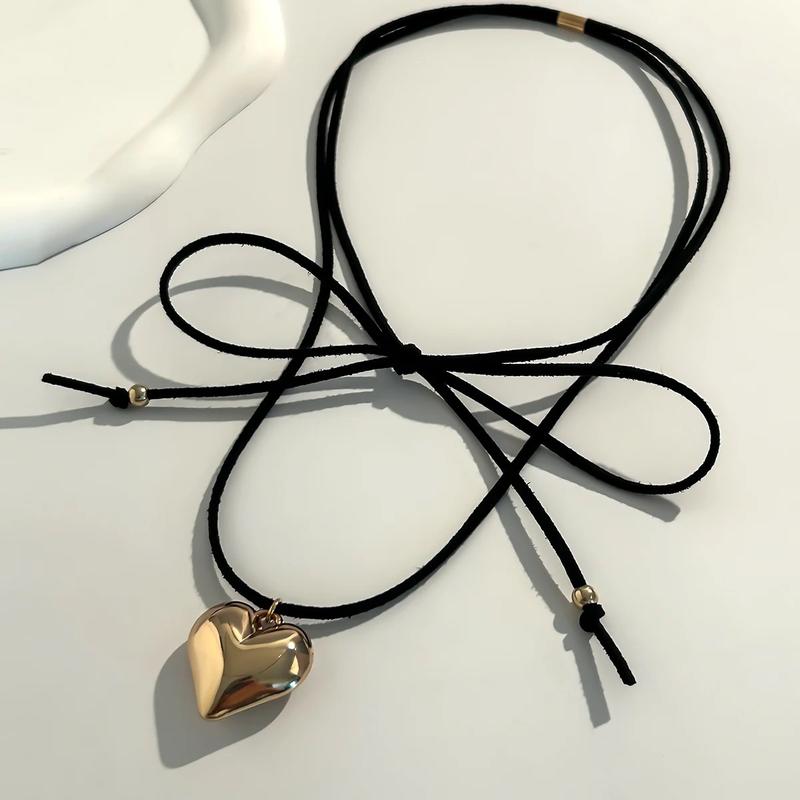 Стильная подвеска в форме сердца на регулируемом ремешке черного цвета. Цвет сердца золото или серебро