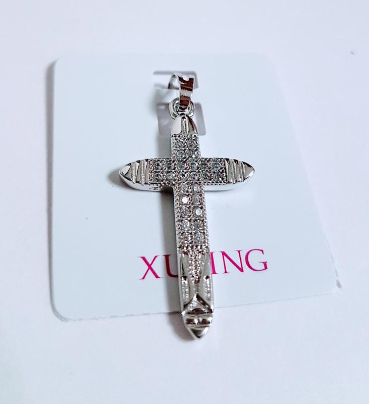 Ювелирный хрестик с камнями из циркония. Сверху крест покрыт родием( белое золото)