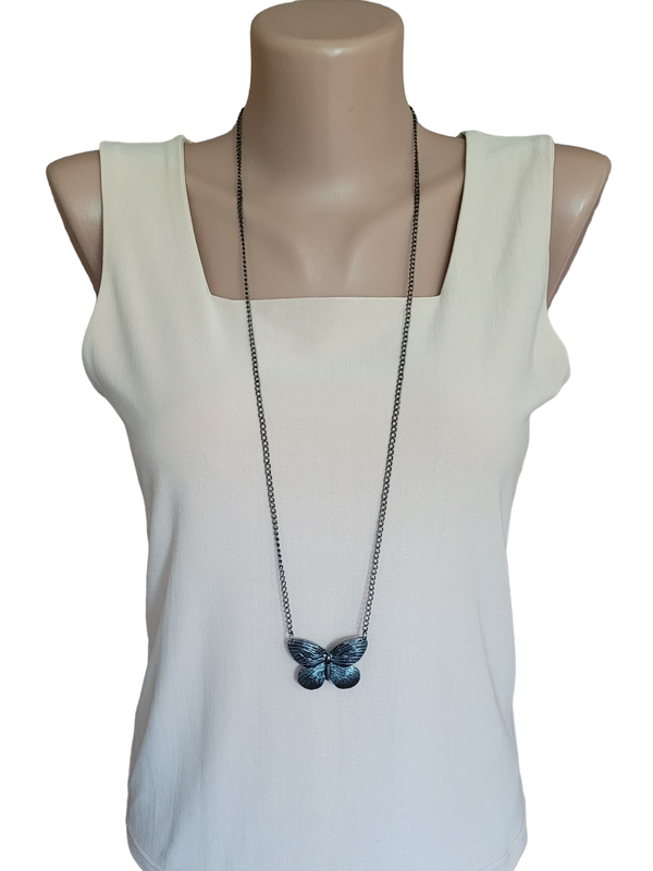 🦋Трендовое украшение подвеска бабочка 🦋Нержавеющий металл, темный 🦋Подвеска винтажная в отличном состоянии 🦋Длина 43 см