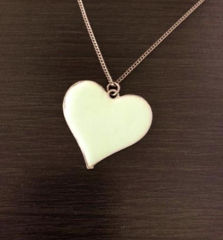 Цепочка с кулоном эмаль в виде сердечка. Высота кулона 4 см, ширина тоже 4 см. Длина цепочки 56 см плюс удлинение на 5 см. Цвет кулона мятный. Есть такой же в розовой эмали