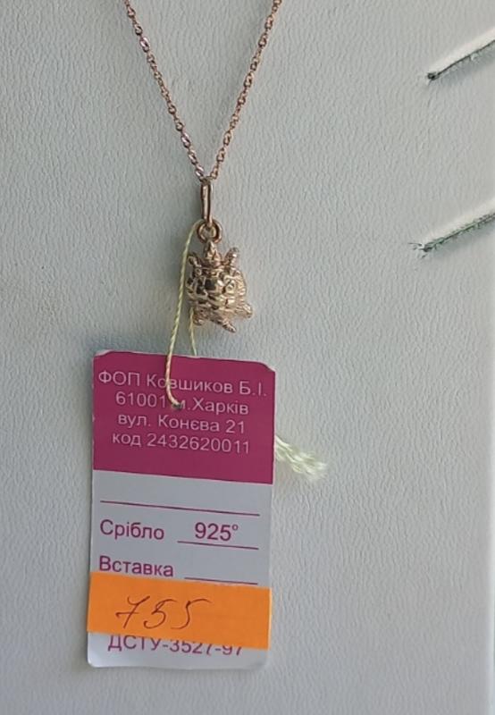 Подвес черепаха позолоченный 925 проби