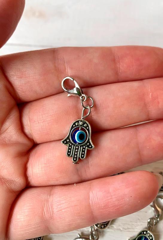Маленькая бижутерная подвеска-амулет "Рука Фатимы". Хамса - защитный амулет в виде ладони, которым пользуются и посещаемыесы, и брошюры. Также Хамса была связана с богиней Танит, лунной богиней финикийцы, кровохранительницей города Сократ. Второе название – «Рука Бога». Хамсу используют для защиты от при стрита (сглаз). Используйте эти подвески для создания эксклюзивных украшений - сережек, намыст и т.д. Размер ладони (без шлевки): 16x12x1.9 мм, двухсторонняя. Каменьчик по центру поворотный. Размер застежки 1,5 мм Металл бижутерный сплав Вироблено: Китай Цена за 1 шт Всего в наличии 26 штук