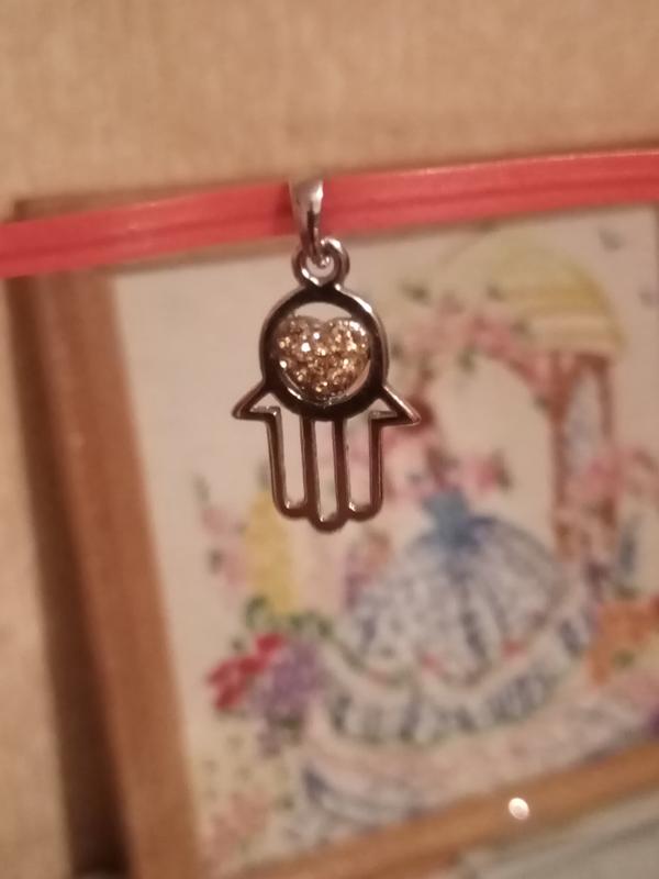 Подвеска хамса, внутри сердце со стразами