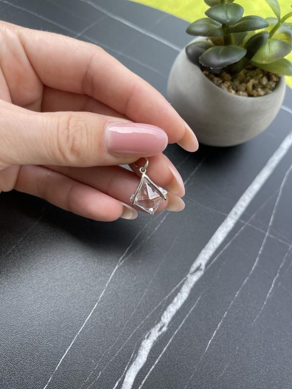 Срібло: 925 Покриття: родій Довжина: 2 см Камінь: циркон. Це напів дорогоцінний мінерал натурального вулканічного походження з хімічною формулою Zr[SiO4]. Рідко зустрічається в природі, його добувають у Таїланді, В'єтнамі, США. Без ланцюжка, проте можна використовувати будь-який ланцюжок та комбінувати ювелірний виріб. Стиль: геометрія, мінімалізм, кристал.