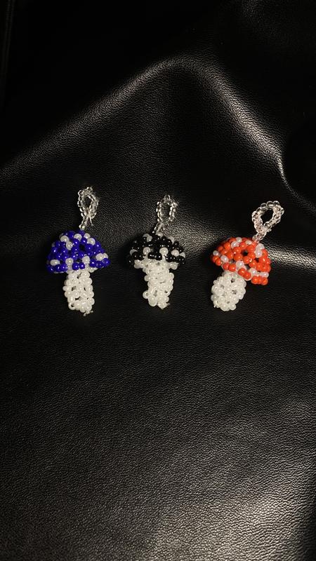 handmade підвіски грибочки з бісеру🍄 можна використовувати у багатьох варіаціях( сережки, брелок, кулон, моносережка…) вартість вказана за одну шт. УВАГА: кілечко у вухо не йде у комплекті і наявне на фото для наглядності. можливе виготовлення в необхідній к-сті і кольорі.