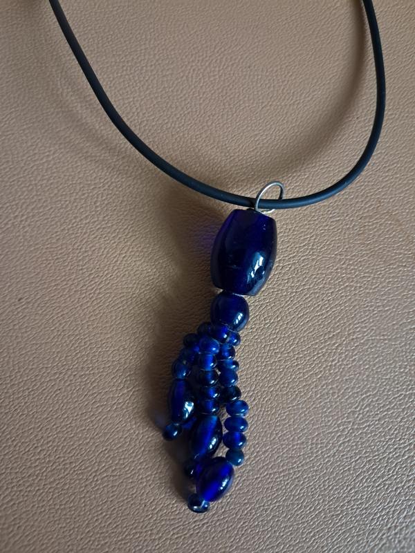 темно синее стекло ручной работы, размер на фото, каучуковый шнур на застежке. могу заменить на цепочку за небольшую доплату. при покупке нескольких моющих товаров подарок на выбор. больше украшений смотрите на моей странице.
