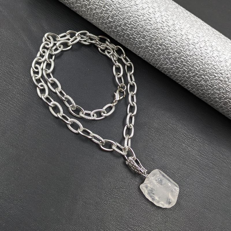 Украшения из горного хрусталя. Необработанный горный хрусталь на цепочке. Прекрасный выбор для женщины работающей в офисе, потому что идеально подойдет под многие наряды. Два сьемных кулона на выбор или : - горный хрусталь – розовый кварц.