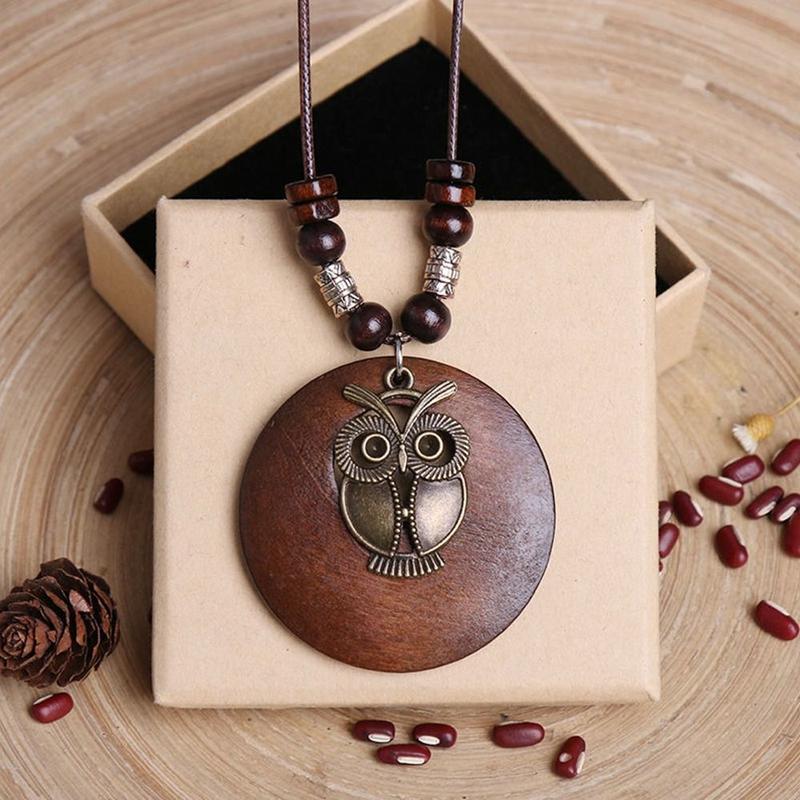 Материал: дерево, сплав, высококачественная восковая веревка. Подвеска в диаметре 5 см, длина 83см. Подходит под пальто, свитер, платье, водолазку.