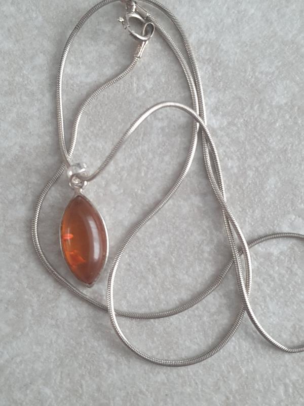 янтарь, серебро 925 пробы, длина цепочки 40 см