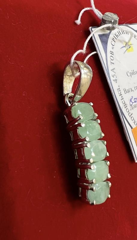 Серебряная подвеска 925 пробы с вставками из натуральных зеленых изумрудов, вес изделия 2.61 грамм.