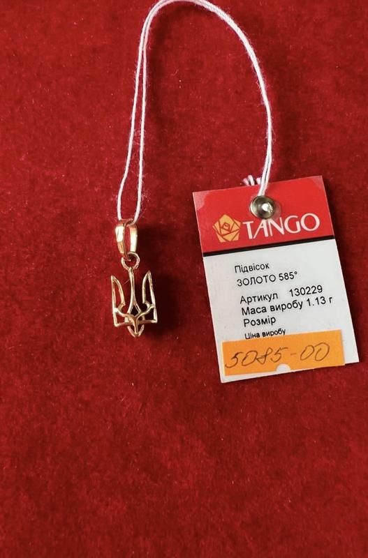 Золотий підвіс 585 проби Тризуб, вага виробу 1,13 грами.Виробник ювелірна фірма Танго.