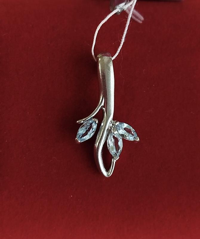 Серебряная подвеска 925 пробы со вставками из натуральных голубых топазов форма лодочка, вес изделия 3,03 грамма.