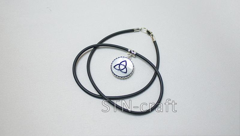 Подвеска “Трикветр”. Перламутр, серебро, каучуковый шнур. Символ "Трикветр" – древний сакральный орнаментальный символ народов Северной и Центральной Европы, наименование которого происходит от слияния двух латинских слов (tri – три и quetrus – имеющий углы). Трикветр был олицетворением Небесного светила, символизируя основные фазы движения Солнечного диска. Три угла символа обозначали положение Солнца на небосводе, каждый из углов этого знака соответствовал восходу, зениту и закату. Таким образом, древний амулет трикветр символизировал круг жизни и возрождения, в свою очередь, олицетворяя равенство, неделимость и вечность. Амулет изготовлен из натурального перламутра который также обладает многими полезными свойствами: наполняет позитивной энергией, усиливает интуицию, обеспечивает поддержку своему хозяину на пути духовного развития, защищает от негативных внешних воздействий. Оправа камня выполнена из серебра 925 пробы. Изображение символа "Трикветр" традиционно вырезано по камню вручную. Резьба гравировки прокрашена крафтовой ювелирной краской, изготовленной из ювелирной смолы и порошка натурального камня шунгита. В состав изделия входит: - подвес (оправа для камня) 1,2 г серебра 925 пробы - кулонник (крепление для подвеса) 0,6 г серебра 925 пробы - застёжка 0,8 г серебра 925 пробы - перламутровый диск с символом Трикветр диаметром 1,8 см - каучуковый шнур (длина: 40 или 45 см - на выбор). По договорённости с заказчиком, возможно изготовление шнура из натуральной кожи (чёрная, круглая) с застёжкой из серебра.