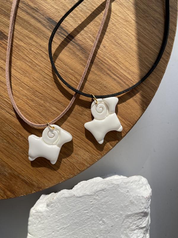 Подвеска барашек. Ручная работа, полимерная глина. Цвет шнура на выбор. Длина шнура - 1м.20см. Доступные цвета шнура: •белый; •черный; •красный; •беж Размер - 3х3см.