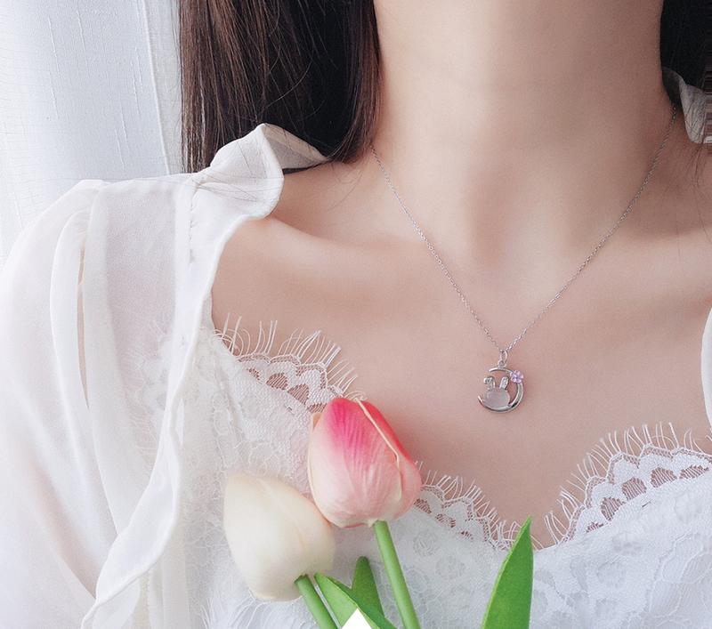 Подвеска серебряная Лунный Зайчик с Халцедоном, кулон с натуральным камнем, серебро 925 пробы, длина 40+4.5 см