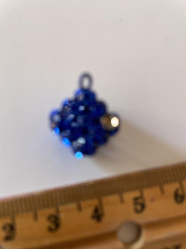 Украшение можно отнести к стилю современной бижутерии с элементами глэм-рока и минимализма. • Синий подвес с инкрустацией камушков может быть элементом в стиле glam или bling, где главную роль играет блеск и роскошный вид. В целом, это модерновая бижутерия, которая сочетает различные стилистические направления: от минимализма до гламура.
