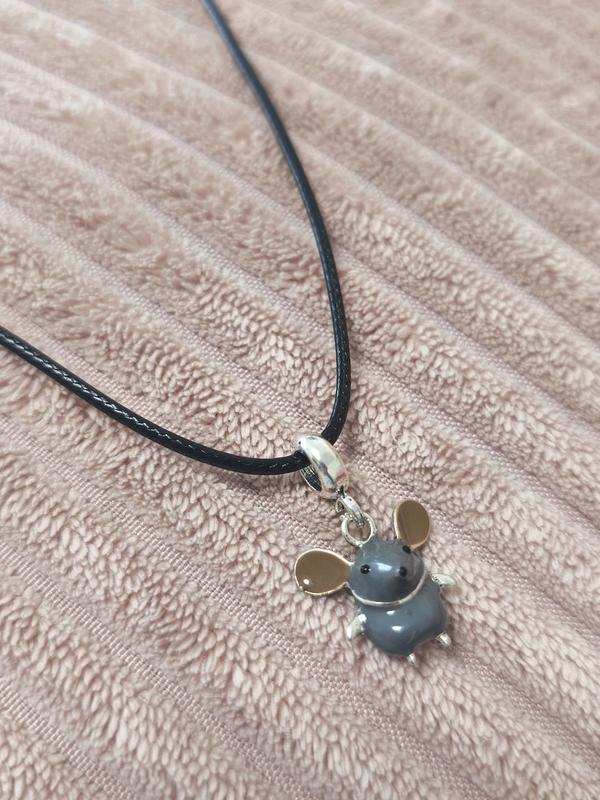 Стильная подвеска с мышкой на шнурочке, украшение, колье с мышкой на шнурке, кулон с мышко...