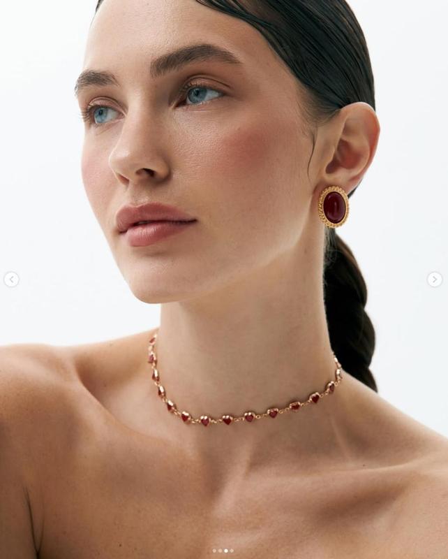 Чокер с красными сердечками, золотая фурнитура Длина: 31 +6 см