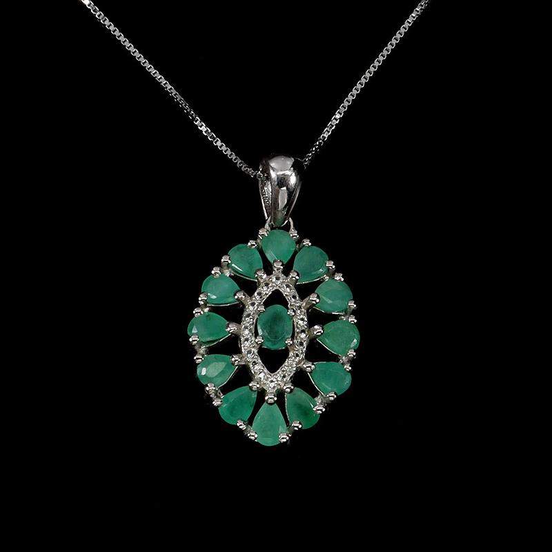 П4926 Natural Emerald, White Topaz 441.0 Х 28.0 X 15.0 MM. Вага 3.95 гр. Серебро 925 пробы покрыто белым золотом. Размер камней - 1.0 TO 4.0 X 3.0 MM. Чистота - Transparent. Обработка - Unheated. Происхождение - Brazil.