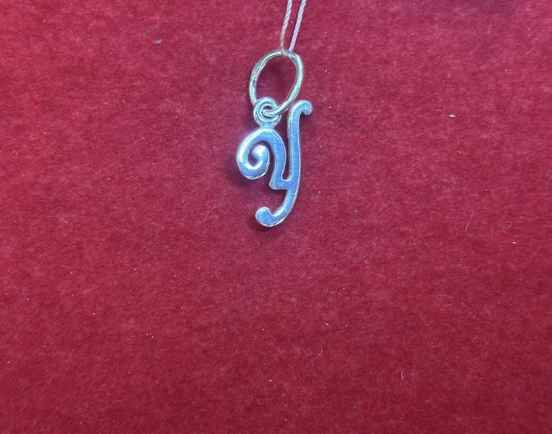 Срібна підвіска 925 проби у вигляді літери У вага виробу 0,88 грам.