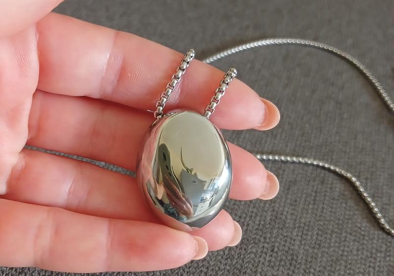 Купила, но так и не носила, мне не “желала”. Длина цепочки- 72+6 см, кулон 3×2см