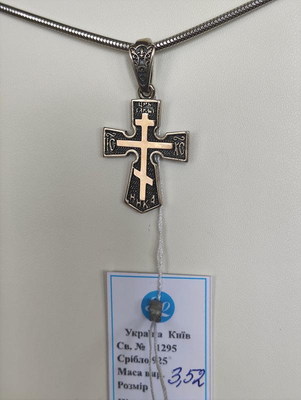 підвіс хрест срібний з золотими пластинаии