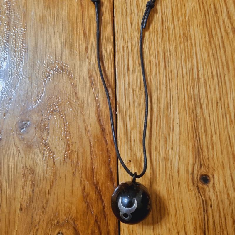 подвес, на шнуровке регулирующей длину.металлический с пластинами серебра и золото.в шарике колокольчиков.звон ласково, улучшает состояние человека.есть сход эмали (риентажная)