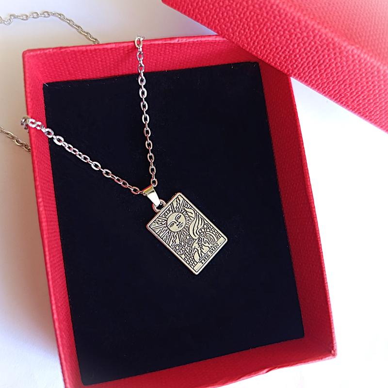 Длина цепочки - 40 см + 5 (нержавеющая сталь). Длина подвески - 23 мм, ширина - 13 мм. Материал подвески: сплав. Кулон Таро "Солнце" символизирует оптимизм, радость, успех и жизненную энергию. Он может помочь поднять настроение, найти светлые стороны жизни и почувствовать себя счастливее и энергичнее. Кроме того, кулон может помочь в раскрытии творческого потенциала и достижении целей. Более подробное описание: Радость и счастье: Кулон "Солнце" помогает почувствовать радость и счастье в жизни, даже в трудные времена. Успех и достижения: Он может помочь в достижении целей и реализации планов. Жизненная энергия: Кулон "Солнце" придает ощущение энергии и бодрости. Оптимизм и позитив: Он может помочь преодолеть трудности и найти положительные стороны в любой ситуации. Самовыражение и творчество: Кулон "Солнце" способствует раскрытию творческого потенциала и самовыражения. Другие значения: Символ освещения: "Солнце" в Таро также может означать просветление и понимание. Помощь в принятии решений: Кулон "Солнце" может помочь в принятии важных решений и выборов. Поддержка в духовном развитии: Он может способствовать духовному росту и самопознанию